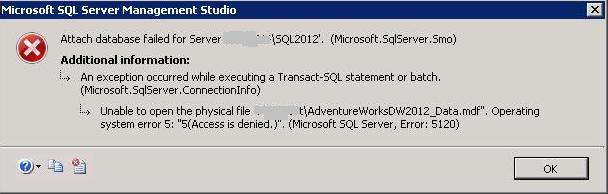 Sql Solutions Microsoft Sql Server Error 5120 Access Denied