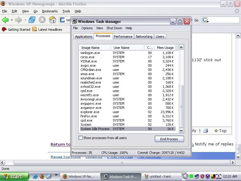 The system idle process is not actually a process it s a representation of the cpu that is not being used. You have firefox running at 5 cpu usage constantly and nothing else is above 0 the system idle process will read 95 usage because it s the inverse of the amount being used it s not actually using 95 of your cpu it does nothing and serves no purpose except to show what is not being used. In the example picture the system idle process is at 98 98 of the processor s computing power or in other words 2 of its computing power is being used. The high percent of cpu indicates that a large amount of process power is not being used.